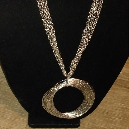 #Ladies Jewel Multi-Strands Layered Chain Silver Tone Pendant Necklace