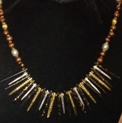Fringe necklaces can vary in length, with some reaching several inches below the neckline.