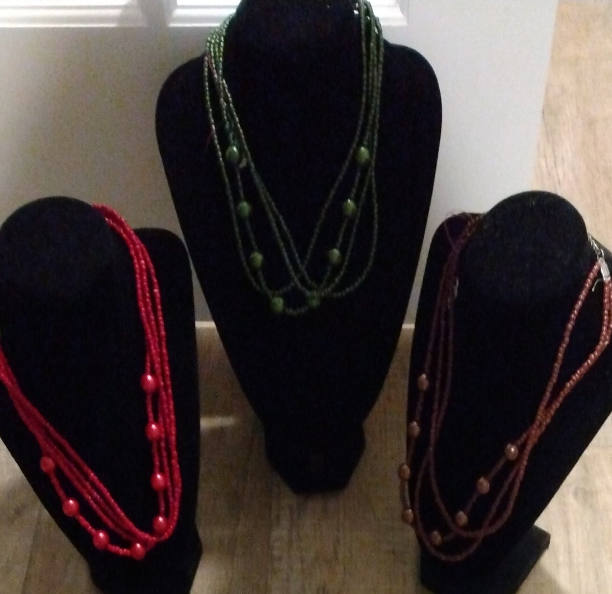 Ladies Necklace Beaded Glass Green Heart Pendant Statement Necklace.