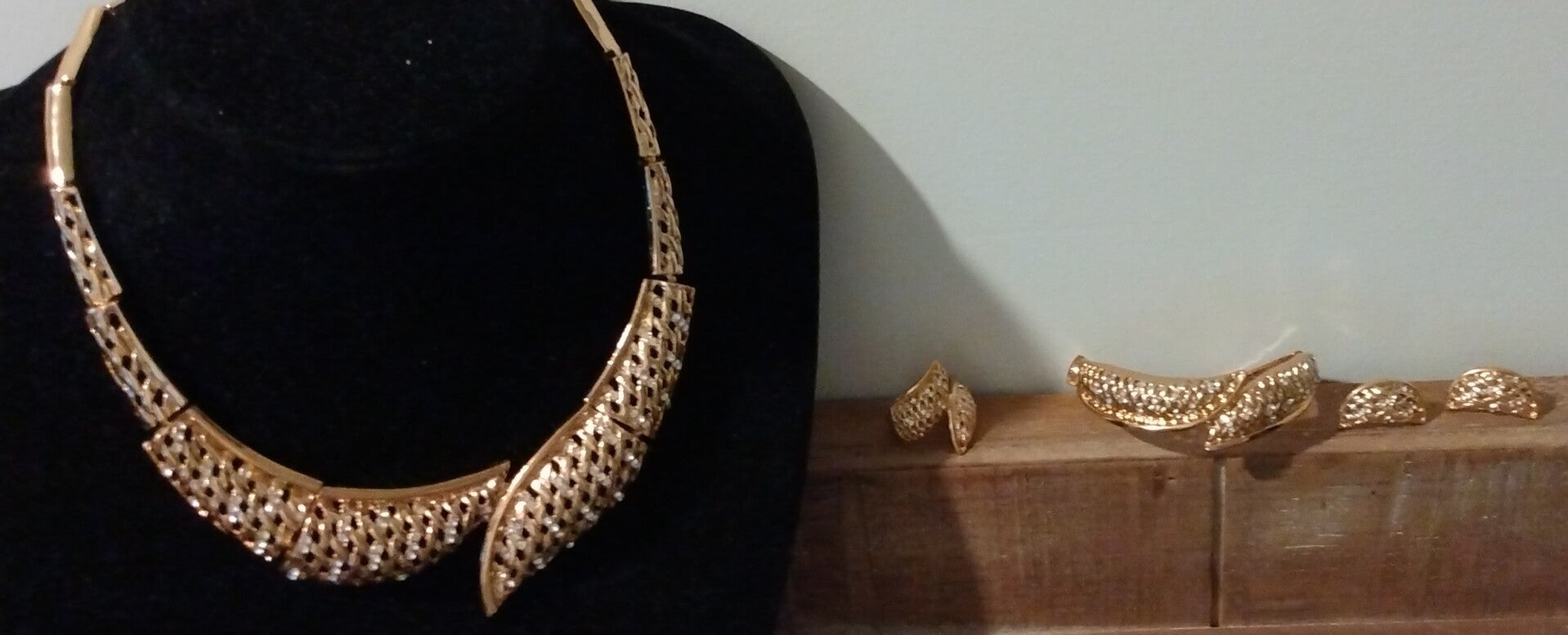 ✨This costume jewelry set makes you stand out among others. The best part of this is that the set comes with rhinestone crystal copper gold tone, necklace, ring, earrings and bracelet.