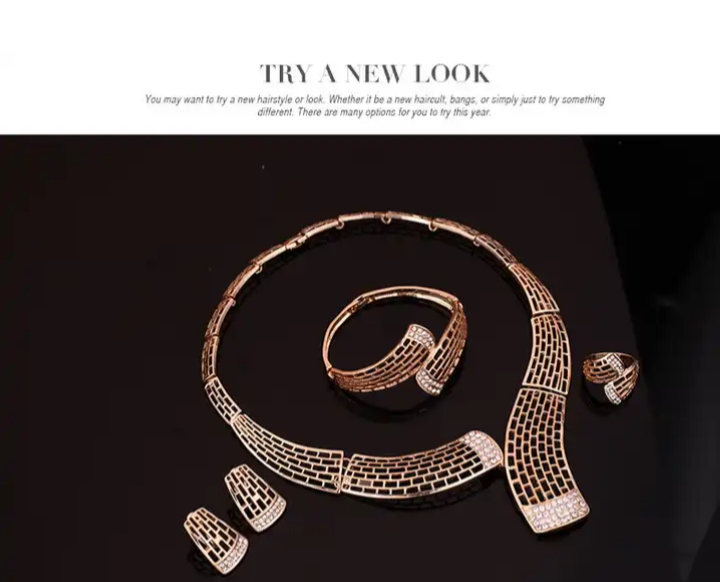 2. »MzSucc3zz Ladies African Dubai Gold Color Rhinestone Crystal Jewelry 4 Pcs Set