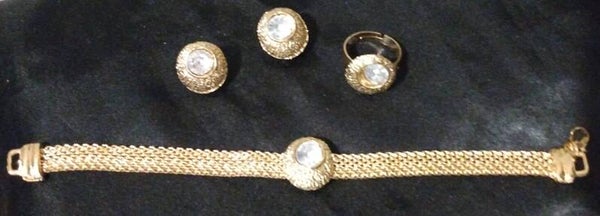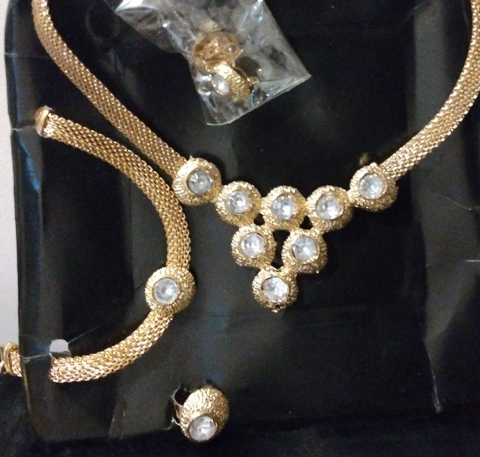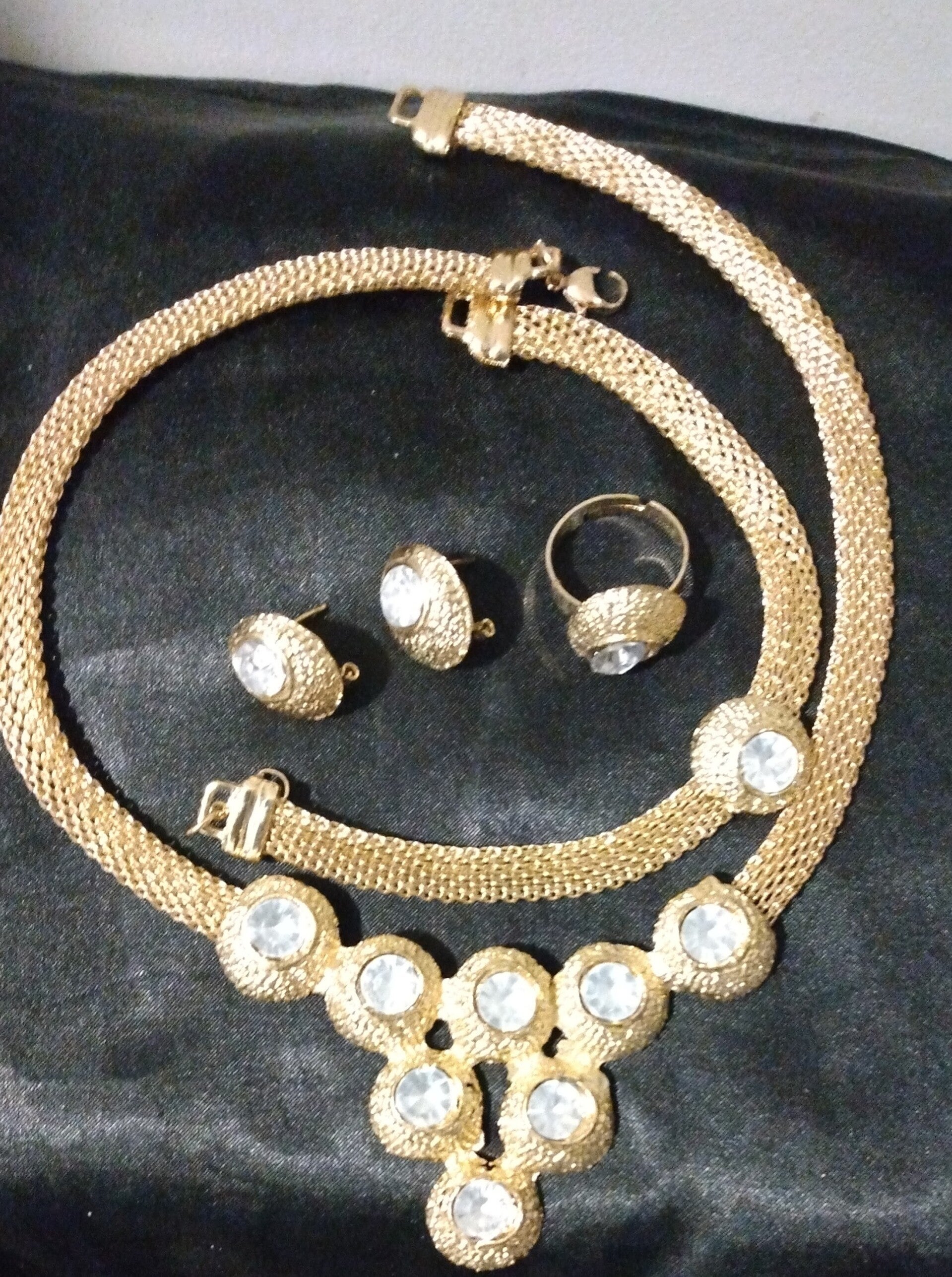 Gold Plated Dubai Necklace Earrings Ring Bracelet Set Indian Bridal Jewelrybrand new and high qualityGold plated dubai necklace earrings ring bracelet set, looks simple and stylish.