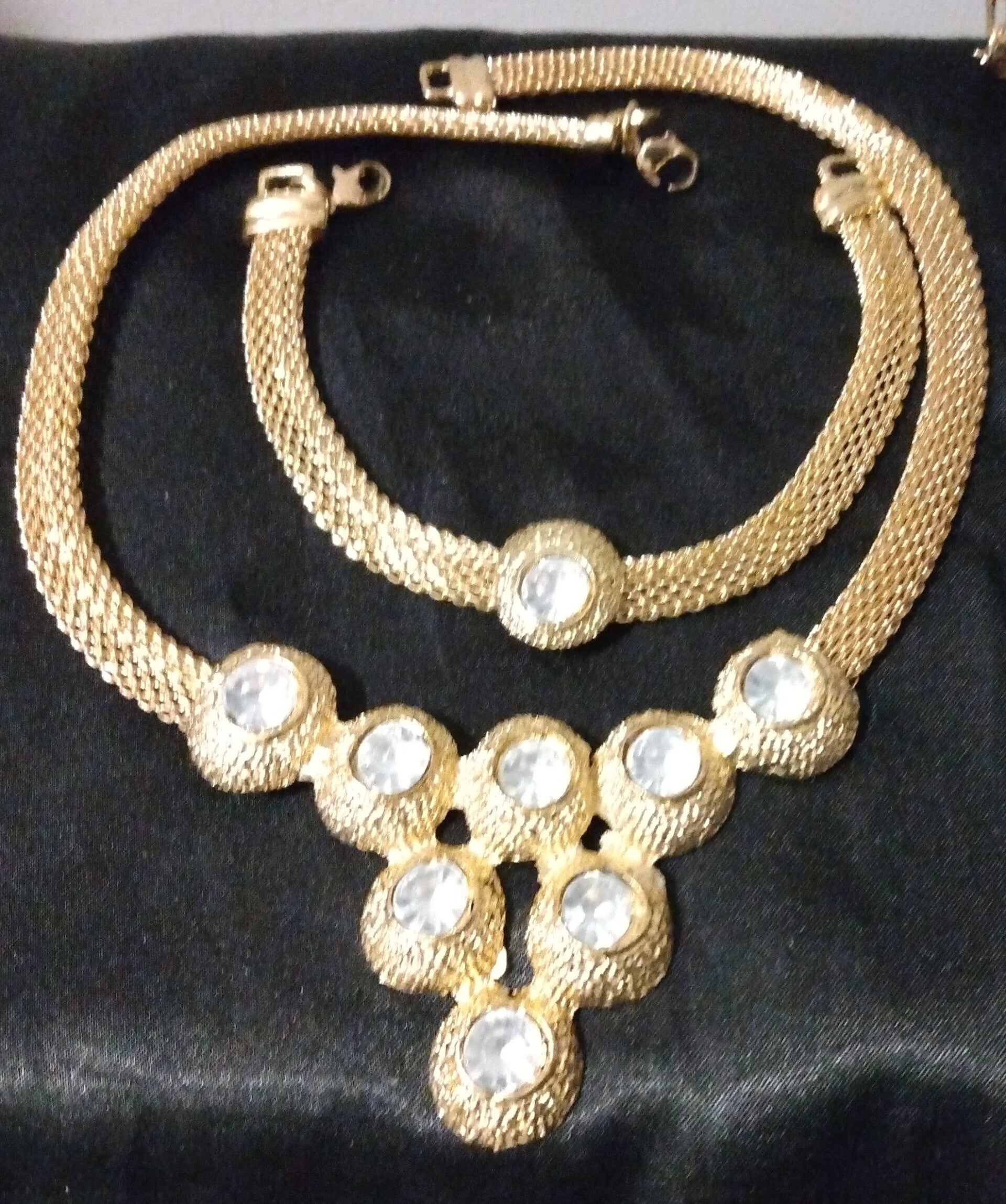 Dubai Round Circular Deco Crystal Shaped Triangle Y-G Necklace 4pcs Set