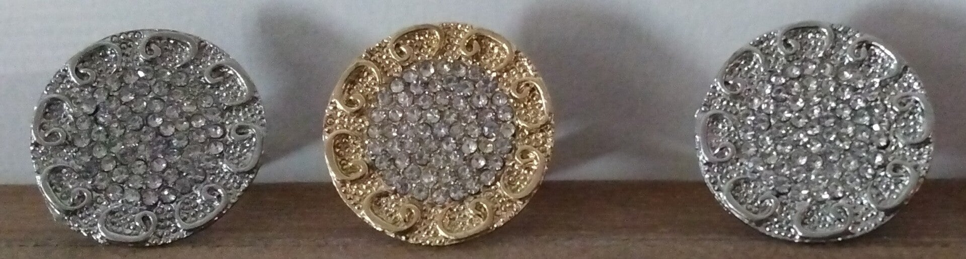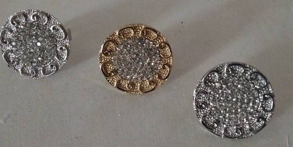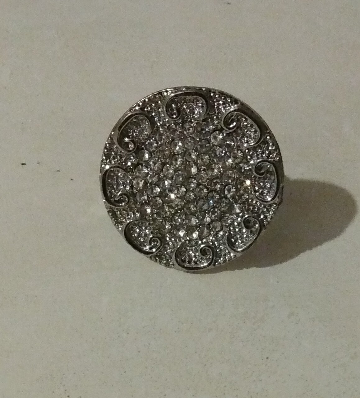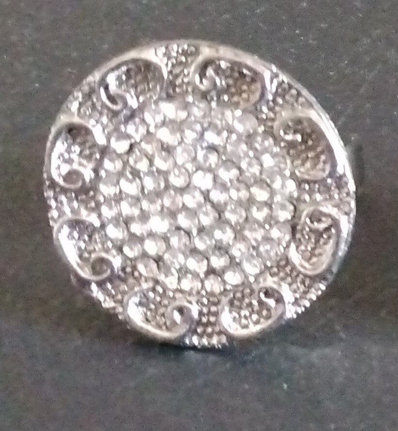 Men/Women Ring Filigree Textured Design Diamanté & Swirls Disc Pendant Adjustable Ring Silver & Gold Plated Deco Crystal Adjustable Ring