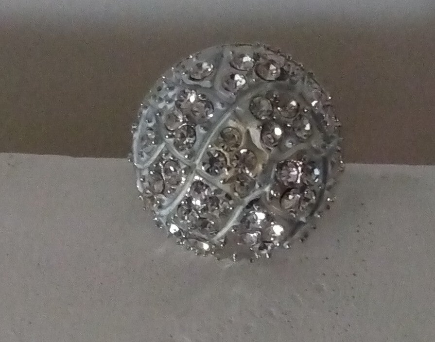 Ball Shaped Rhinestone COCKTAIL Surrounding Crystal Silver Adjustable Ring
