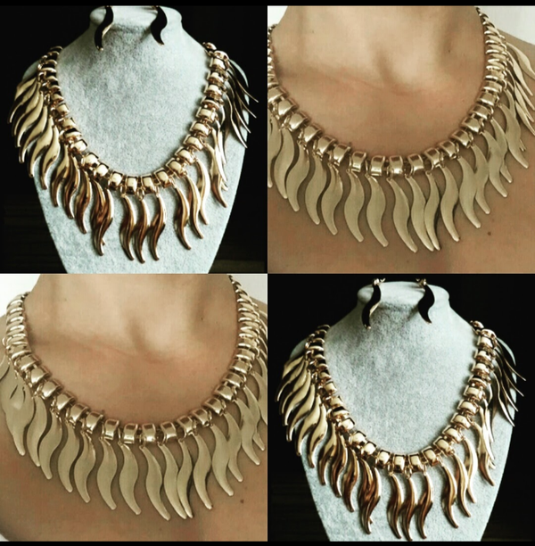 💖This Lightweight Golden Color Collar Women Necklace is very much in high trend gives you a really trendy as well as vintage look. You can wear it on every occasion like party, outing with friends, college, and even office. Team this necklace set with your jeans with denim shirt or skirt. For more, check out our latest fashion earrings and necklace set.