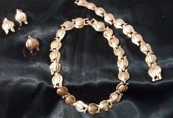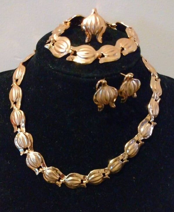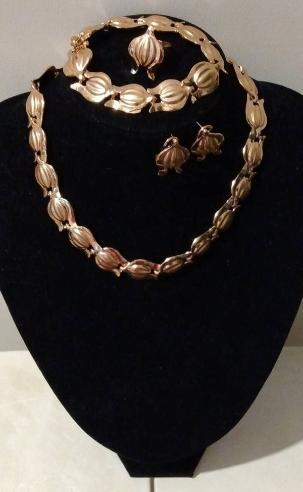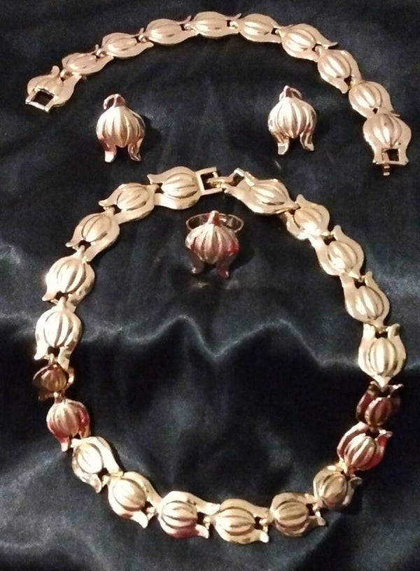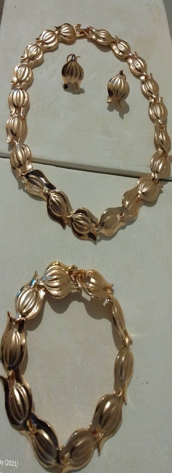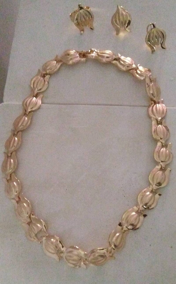 - Vintage Womens Choker Necklace Deco Tulip Shape/ Jewelry Set 4 Women's Accessories/ Gold Plated Necklace Set/