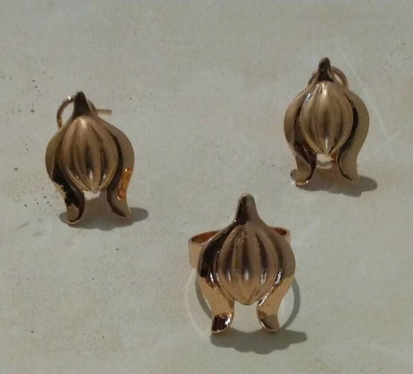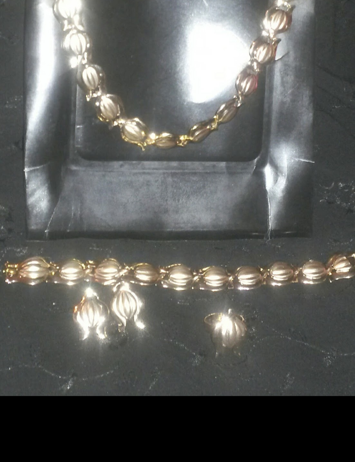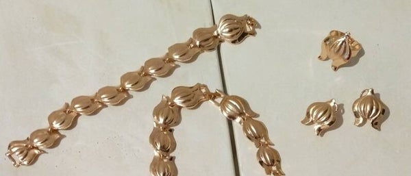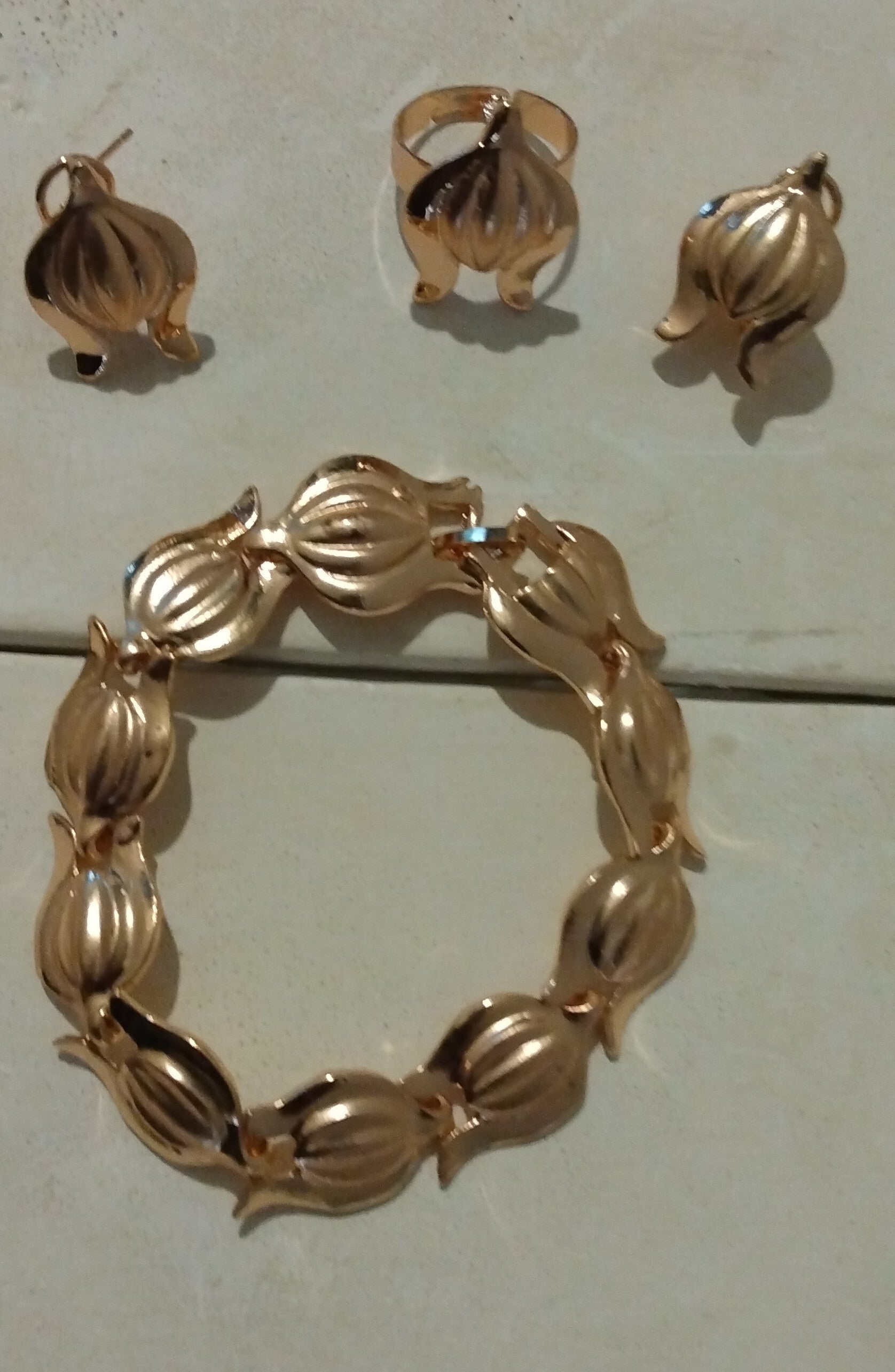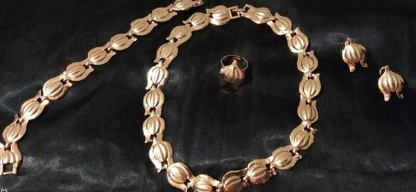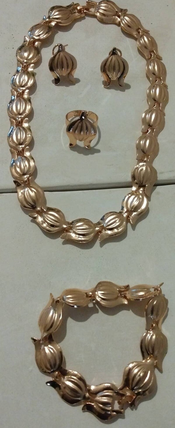 - Vintage Womens Choker Necklace Deco Tulip Shape/ Jewelry Set 4 Women's Accessories/ Gold Plated Necklace Set/