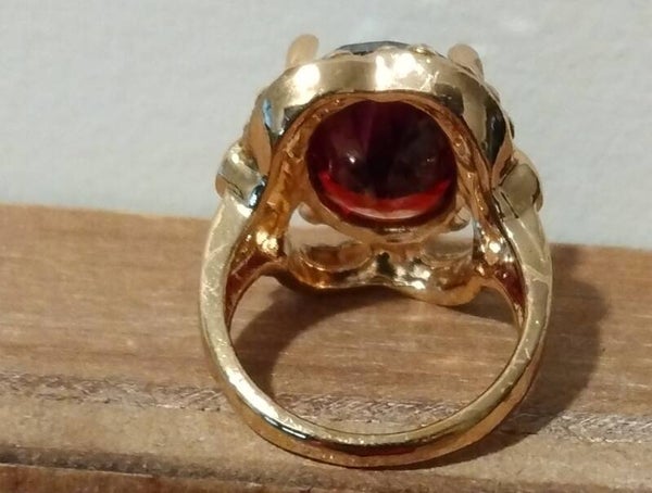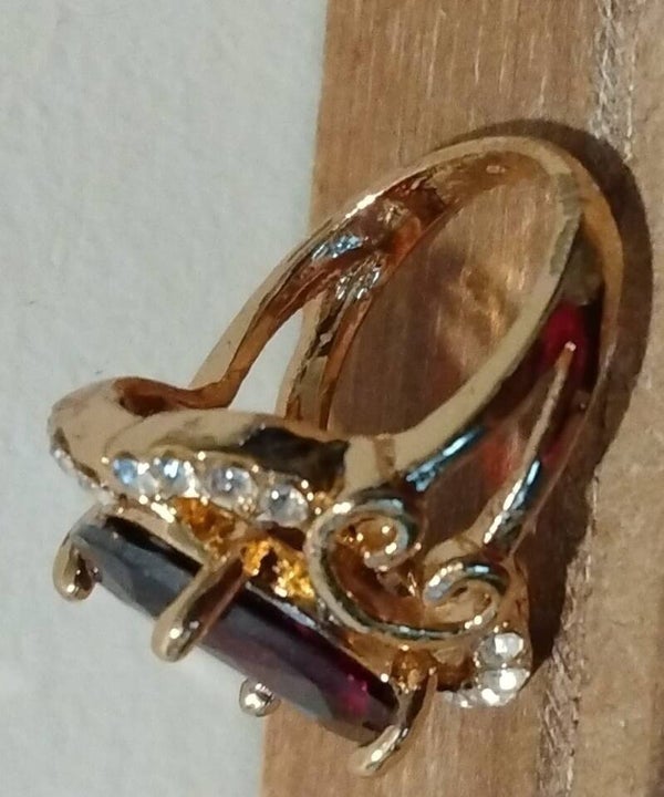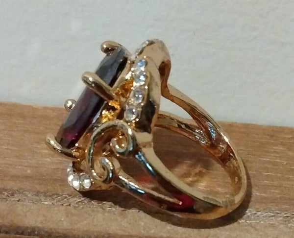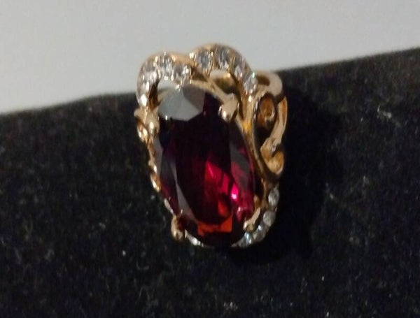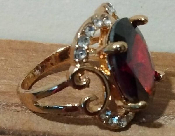 MzSucc3zz Red Garnet Gold Cocktail Crystal Ring/ Fashion Ring for Women's/ A red garnet gemstone, gold, & accented w smaller diamonds / clear stone