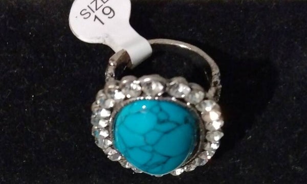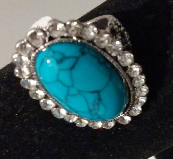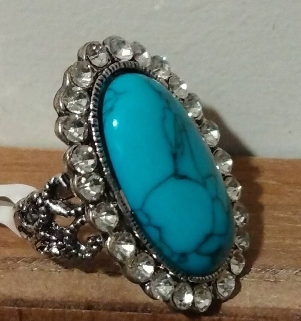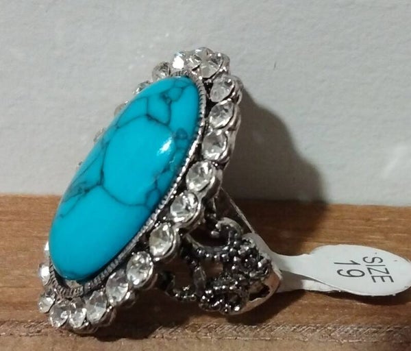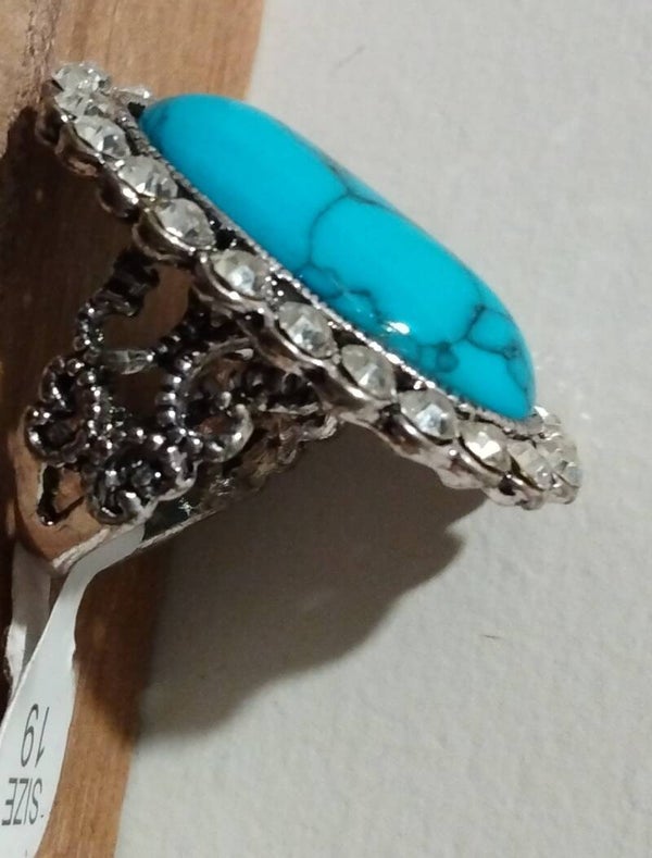 MzSucc3zz Ladies Turquoise Cocktail Crystal Stones Sparkle Ring Size 19
