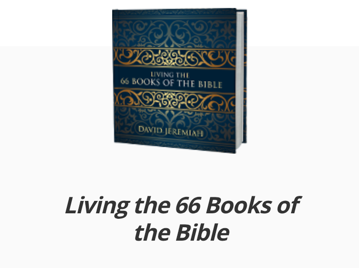 In Living the 66 Books of the Bible, David Jeremiah reviews the 39 books of the Old Testament and the 27 books of the New Testament, emphasizing their relationship on living for Him each day.