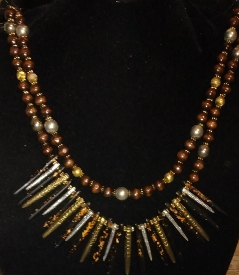 | #2) Boho Multi-layered Single Brown Wooden Beaded Spike Neck | US$5.74 |