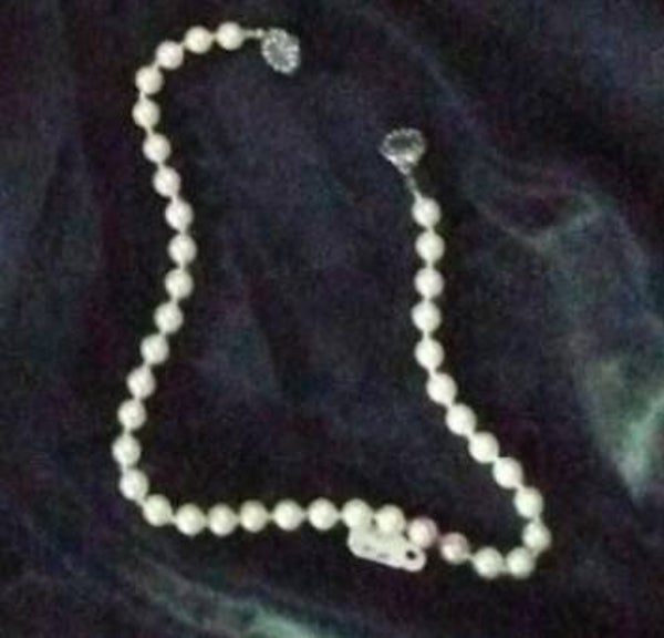 MzSucc3zz Women / Girls Pearl strand necklace, a classic piece often featuring round or semi-round beads and a decorative clasp. The center focal point is a distinctive rhinestone-encrusted sphere, which may serve as either a decorative bead or a magnetic/interchangeable clasp.