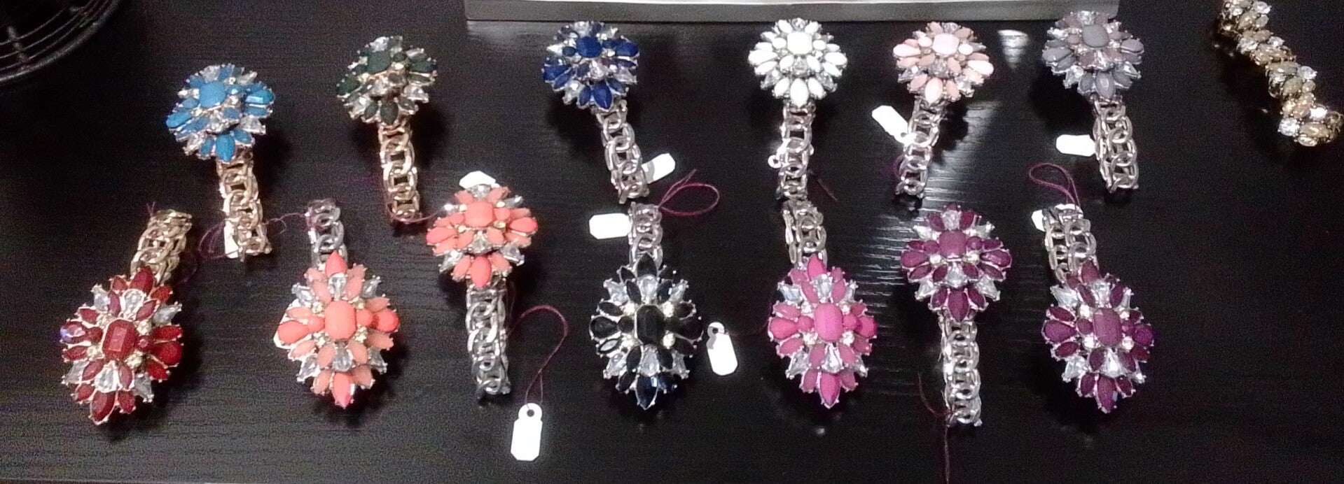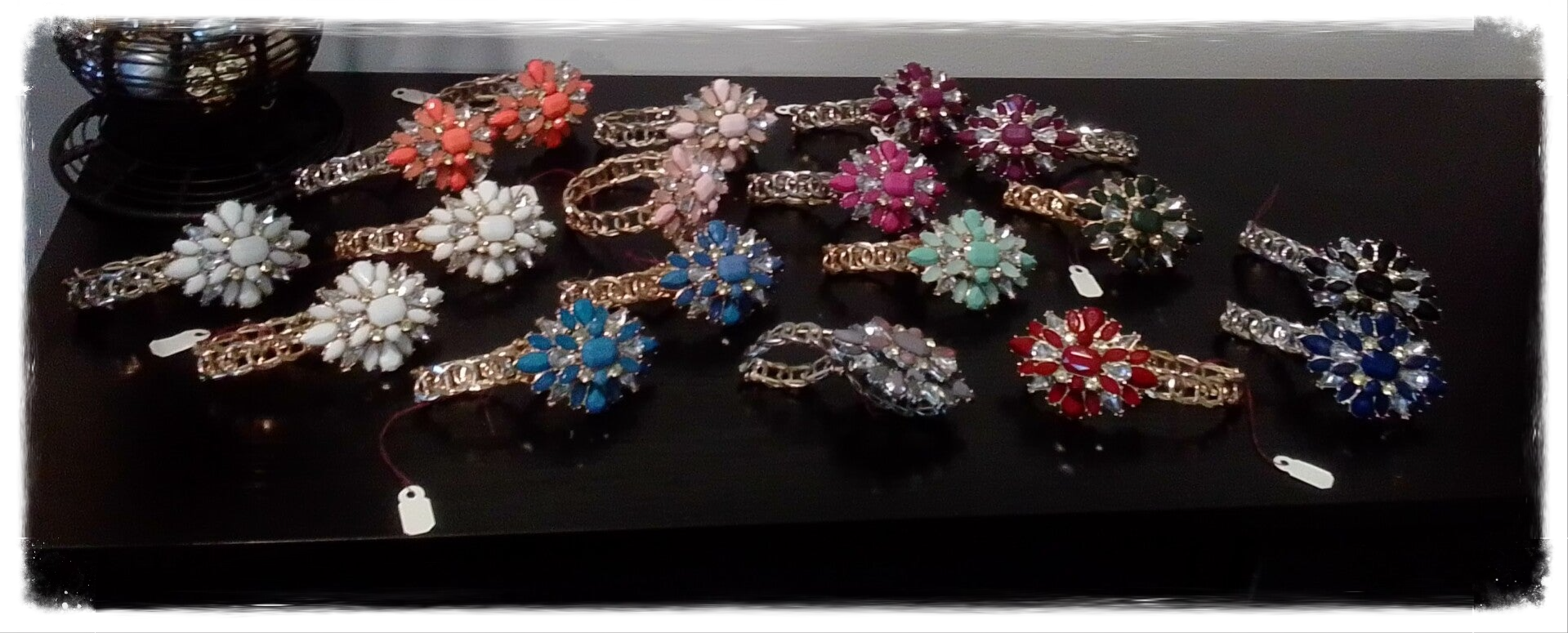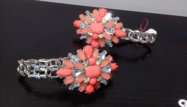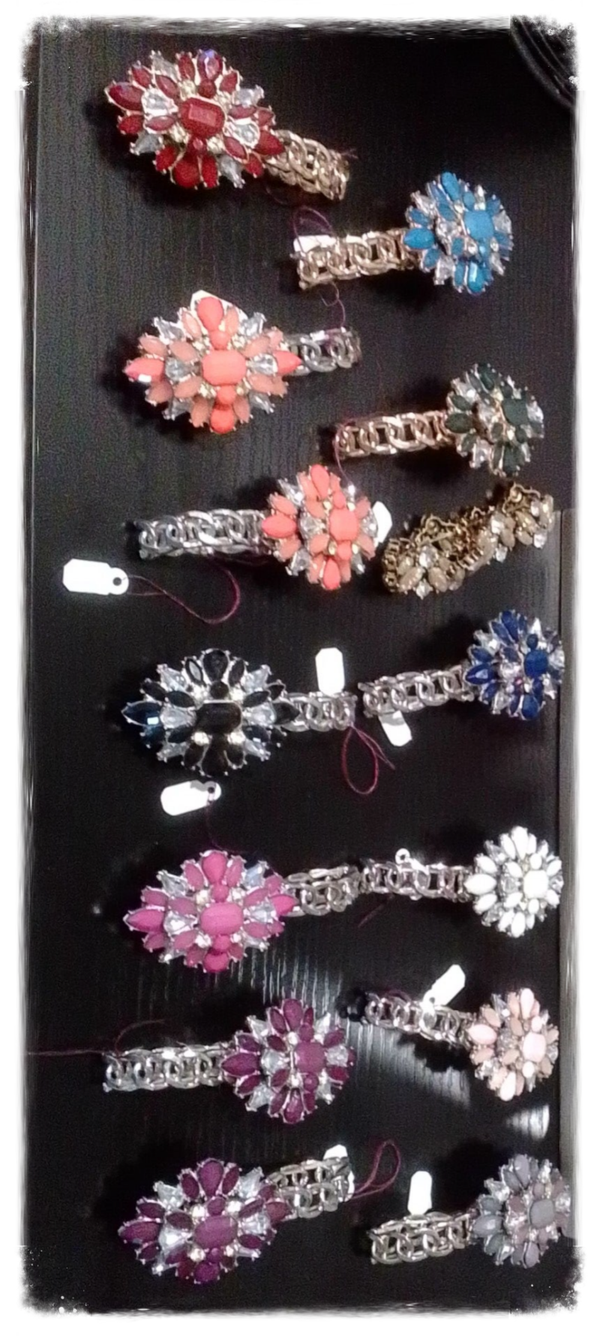 This collection of chunky, colorful floral-themed statement bracelets offers a glamorous, high-impact accessory designed for romantic, evening, or special occasion looks. They are characterized by intricate marquise-cut stone arrangements that evoke natural flower clusters and sunburst patterns.