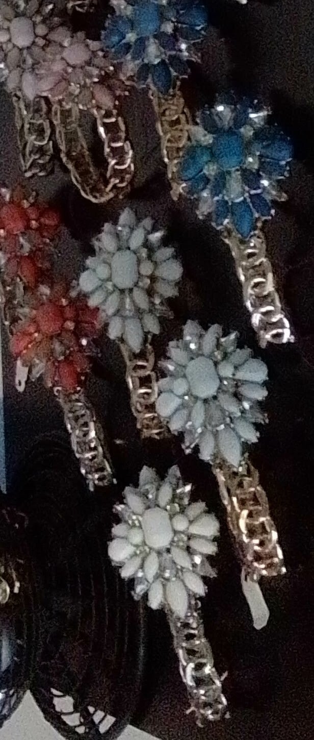 Chunky Bracelets colorful, floral-themed statement bracelets feature marquise-cut stones arranged in sunburst or flower clusters, set on silver-toned chains. They are designed for high-impact, glamorous, or romantic looks, frequently using cubic zirconia or crystals to emulate natural flowers.