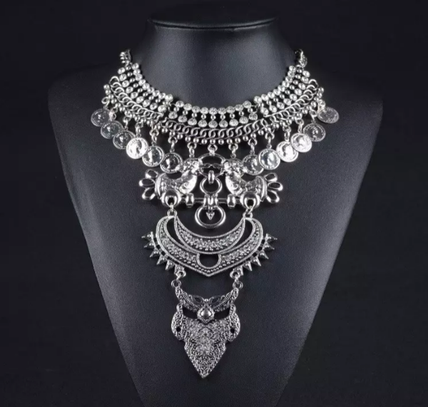 For Women's #Boho Big Bib Pendant Statement Coins w/ Earrings Necklace Set #Choker Folded Pendant w/ #Vintage Coins Dangling Bib Necklace