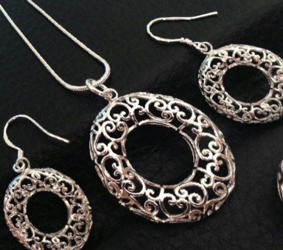 For Women Jewelry #Filigree Silver Round #Westlake Necklace and  Earrings Set