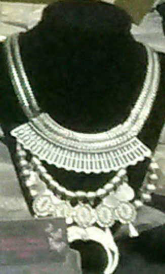 is a multi stone faux Swarovski crystal necklace with authentic tribal design. This necklace link pendant strand.