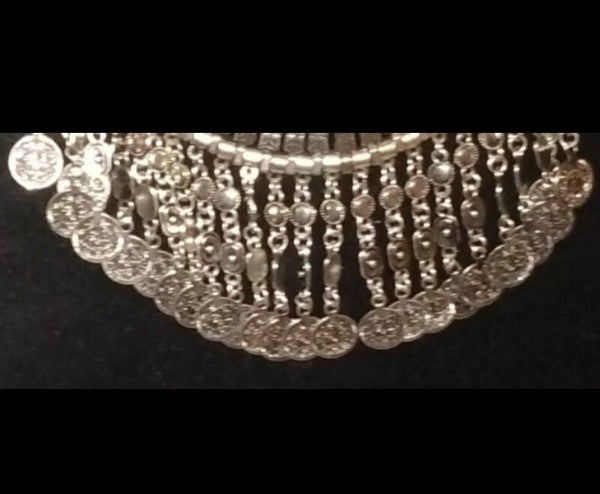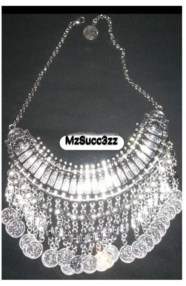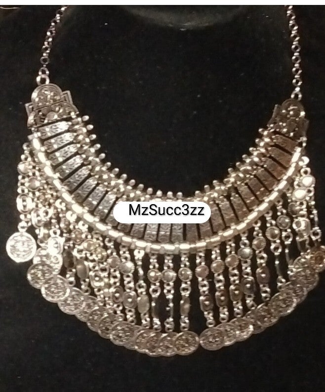 MzSucc3Zz Women Bohemian Tribal Ethnic Gypsy Pendant Statement Necklace, Cleopatra pendants coin necklace, statement  necklace,  turkish, tribal, boho, hippychic, gypsy, bellydance, traditional,Silver Coins Festival Statement Bib Chunky Tassel Choker Bib Tassel Collar Choker Necklace Pendant.