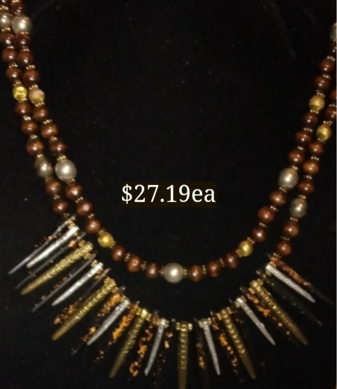 | #2) Boho Multi-layered Single Brown Wooden Beaded Spike Neck | US$5.74 |